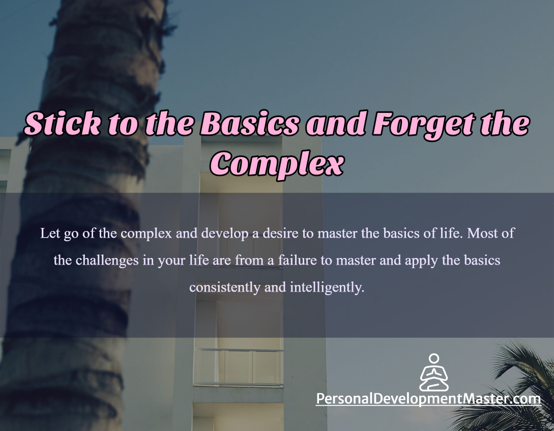 Let go of the complex and develop a desire to master the basics of life. Most of the challenges in your life are from a failure to master and apply the basics consistently and intelligently.